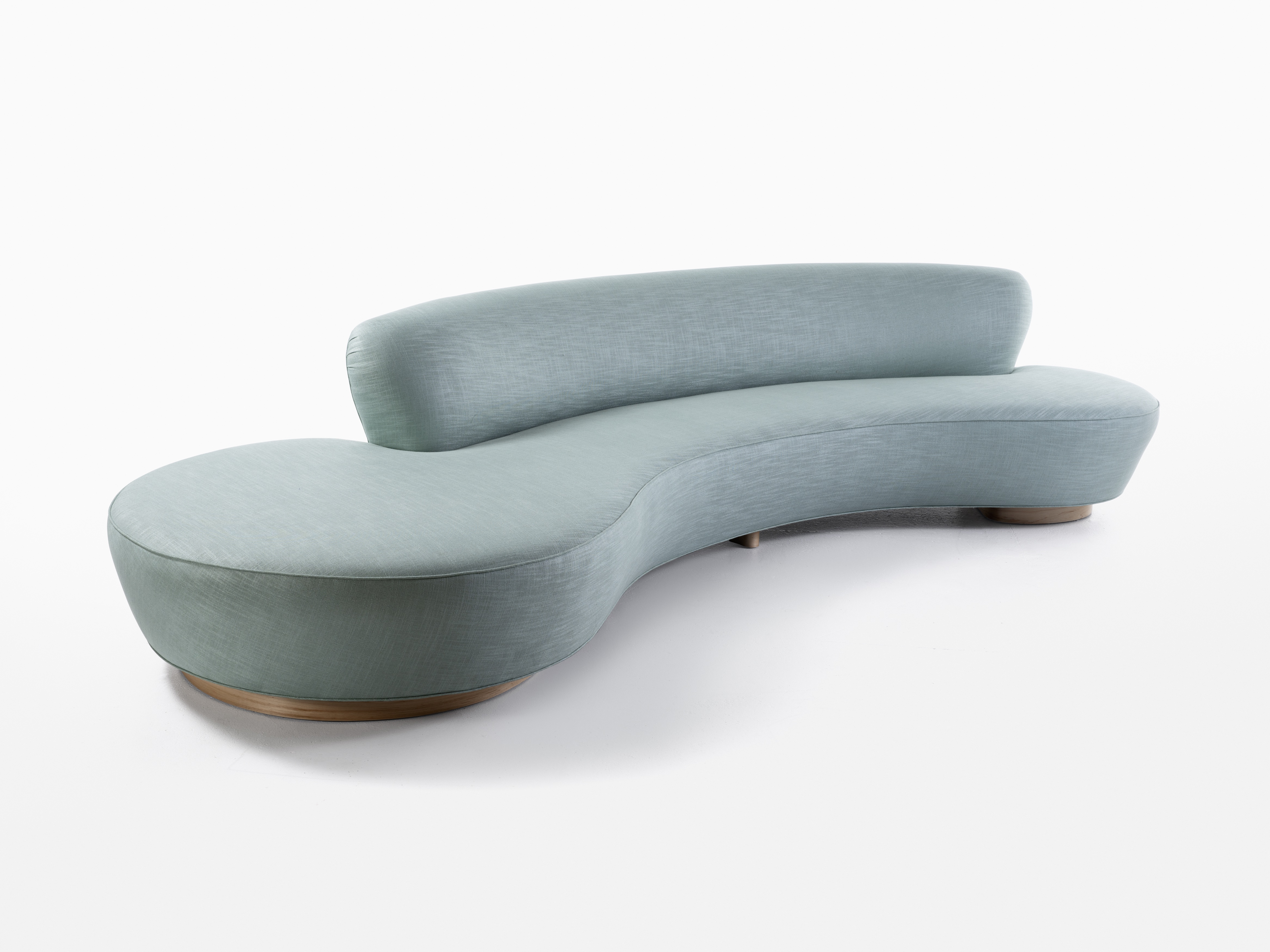 Celebrating its 75th anniversary, the Serpentine Sofa - designed in 1950- remains a modern icon of movement and form. With its sensuous curve and sculptural pouf, the piece broke away from traditional linear seating, redefining the living room as a space for connection and flow. Embodying Kagan’s vision of liberated living, it invites conversation and fluidity while freeing walls for art and personal expression.